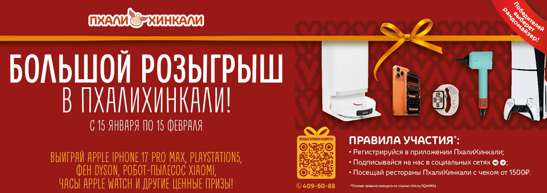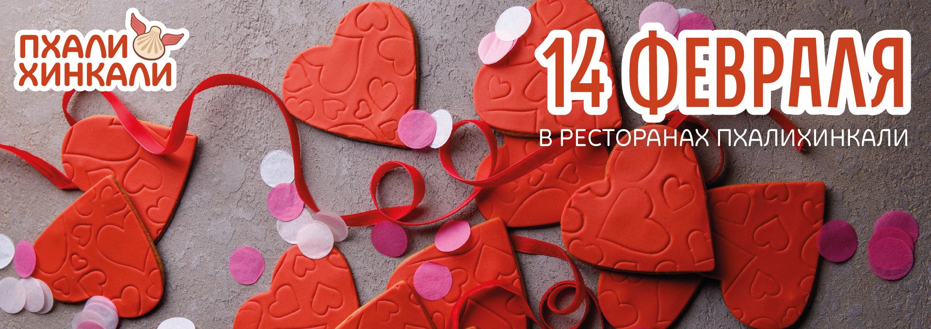 Приглашаем отметить День Влюблённых в ресторанах ПхалиХинкали. В каждом ресторане - дарим комплемент в виде сердца.*