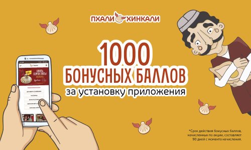 Дарим 1000 бонусных баллов за установку мобильного приложения и заполнения всех граф анкеты при регистрации. Баллы действуют 90 дней с момента начисления. 1 балл=1 рубль.