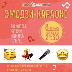 Яркая вечеринка-караоке в стиле эмодзи в ресторане ПхалиХинкали п.Новоселье (Красносельское ш.д2).