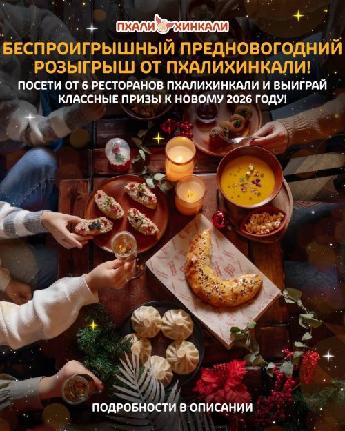 Посети от 6 ресторанов ПхалиХинкали и выиграй классные призы к Новому 2026 году: