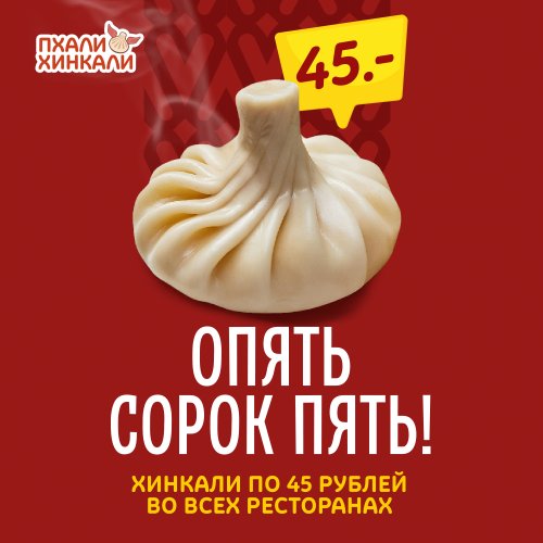 Попробуй новый формат любимого блюда с тем же вкусом, качеством и ценой, с которых начиналась история ресторанов ПхалиХинкали. Уже во всех ресторанах!*