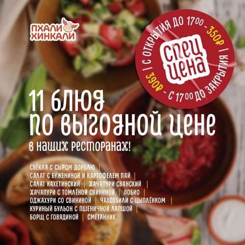 В ресторанах ПхалиХинкали новая акция - специальное меню «350 / 390»!*