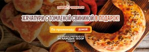 Хачапури с томлёной свининой в подарок по промокоду DOMOY в ПхалиХинкали г.Колпино за каждые 1800 рублей в заказе на САМОВЫВОЗ через сайт и приложение. Сделать заказ на самовывоз.