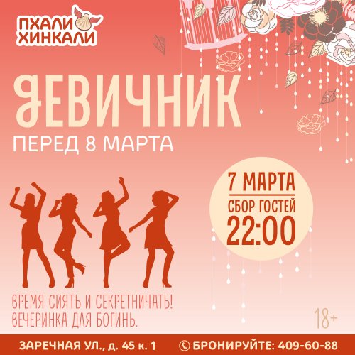 7 марта, начало в 22:00 в ресторане «ПхалиХинкали» на Парнасе (ул. Заречная)
