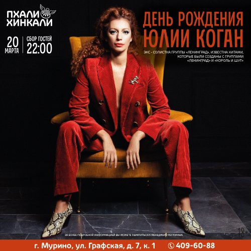 20 марта в ПхалиХинкали Мурино концерт Юлии Коган!